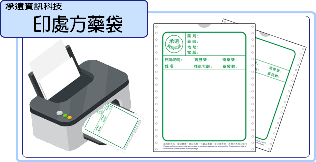 印處方藥袋 - 印處方簡表/明細/診所別簡表/診所案件/藥品彙總/診所毛利數等報表。擁有多種藥袋/收據規格/印藥品圖片。可將處方箋掃描拍照圖片,並存進資料庫,讓所有工作站都可調閱。